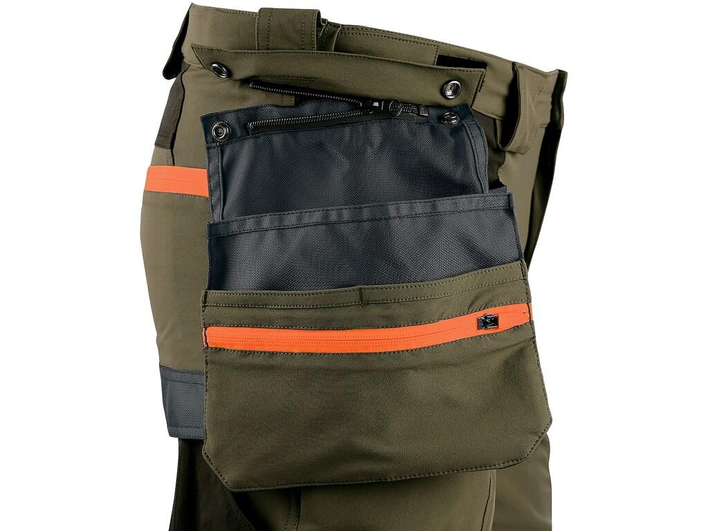 Pánske montérkové nohavice do pásu CXS NAOS s užším strihom nohavíc, s kontrastnými farebnými a reflexnými doplnkami. Stretch materiál umožňuje voľnosť pohybu, vysoký obsah nylonu zaručuje rýchle schnutie. Namáhané miesta sú zosilnené matriálom CORDURA. Prispôsobiteľný pás s možnosťou nastavenia a putkami na opások. 2 odopínacie vrecka na náradie spevnené materiálom CORDURA, 2 predné a 2 zadné vrecka, bočné multifunkčné a na stehne na zips. Zazipsovaná ventilácia v zadnej časti stehien. Možnosť vloženia kolenných výstuh. Spodná časť nohavíc zosilnené matriálom CORDURA proti oderu.